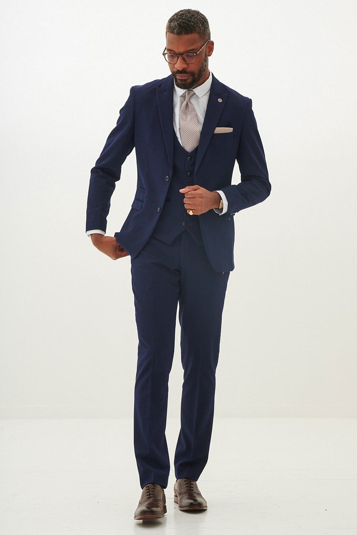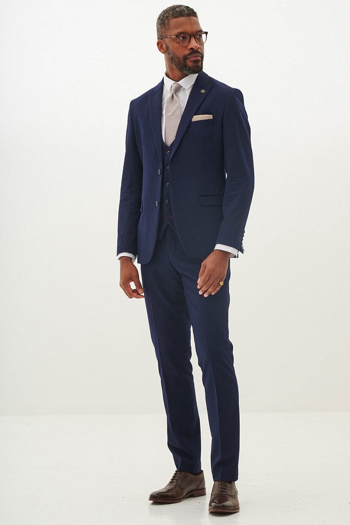 Dieser dreiteilige Herrenanzug besticht durch sein markantes Reversdesign und besteht aus 35 % Viskose und 65 % Polyester für ein glattes, bequemes Finish. Der einreihige 2-Knopf-Blazer verfügt über Seitenschlitze, mehrere praktische Taschen und ein durchgehendes Futter für eine elegante Silhouette. Die passende Weste bietet einen V-Ausschnitt, eingefasste Taschen und einen verstellbaren