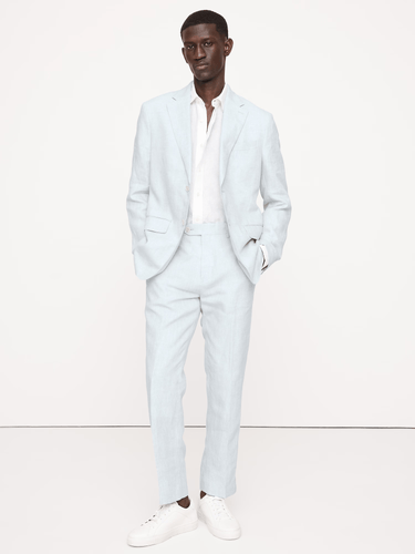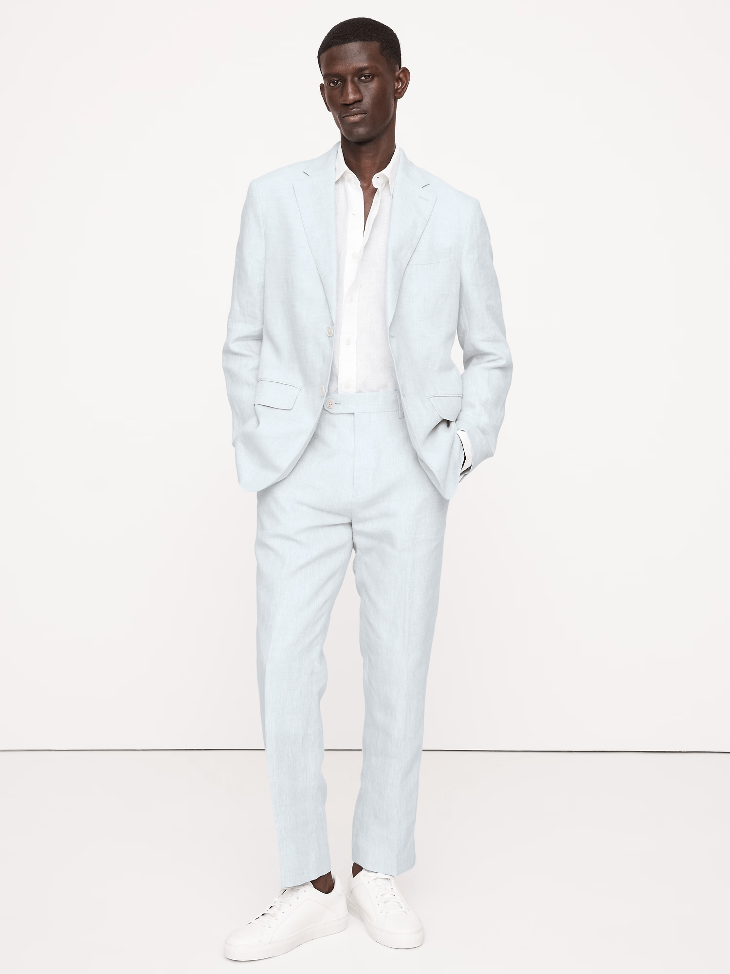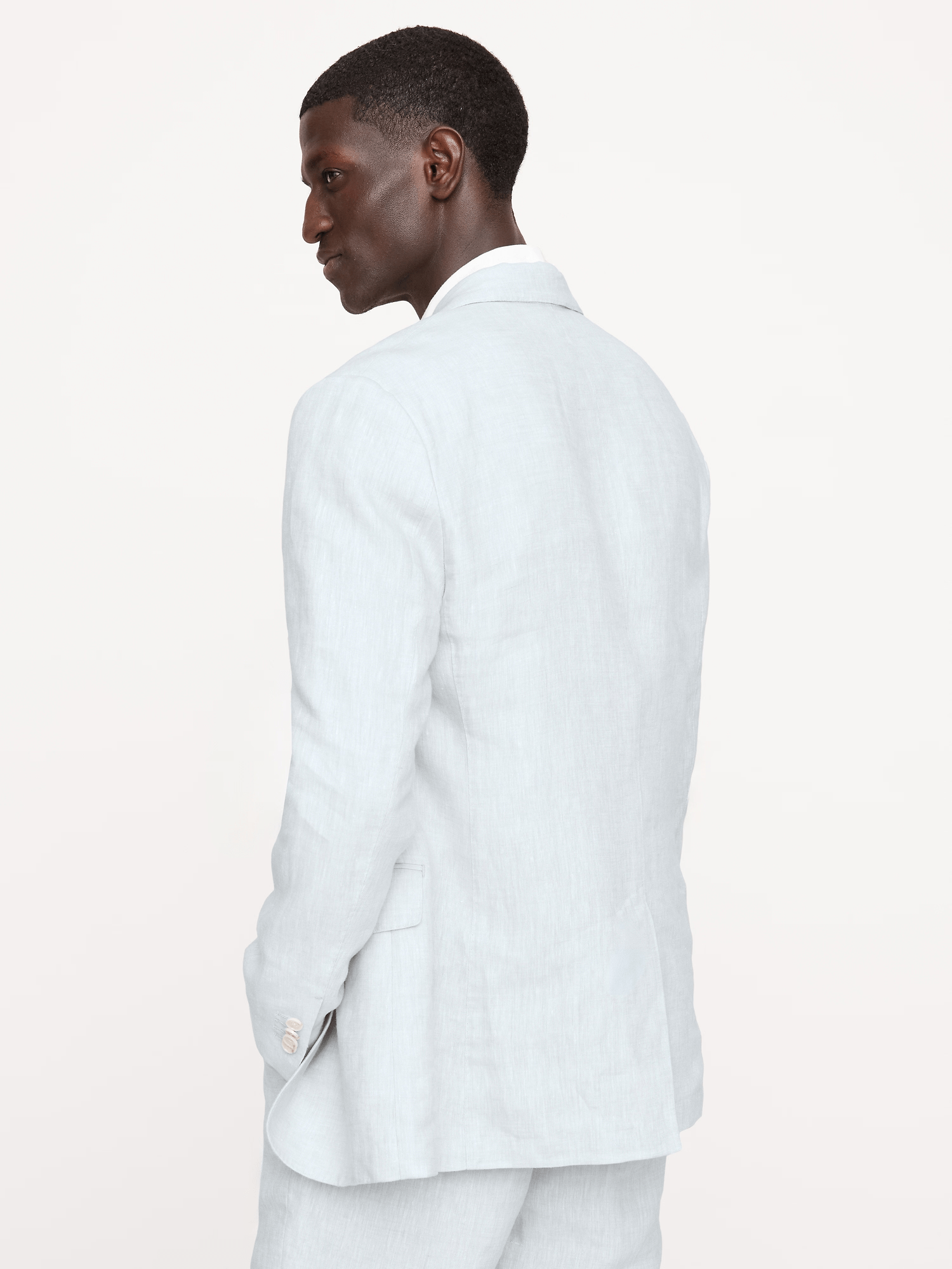 Herren 2-teiliger stilvoller hellblauer Freizeitanzug aus Leinen und Baumwolle mit Revers