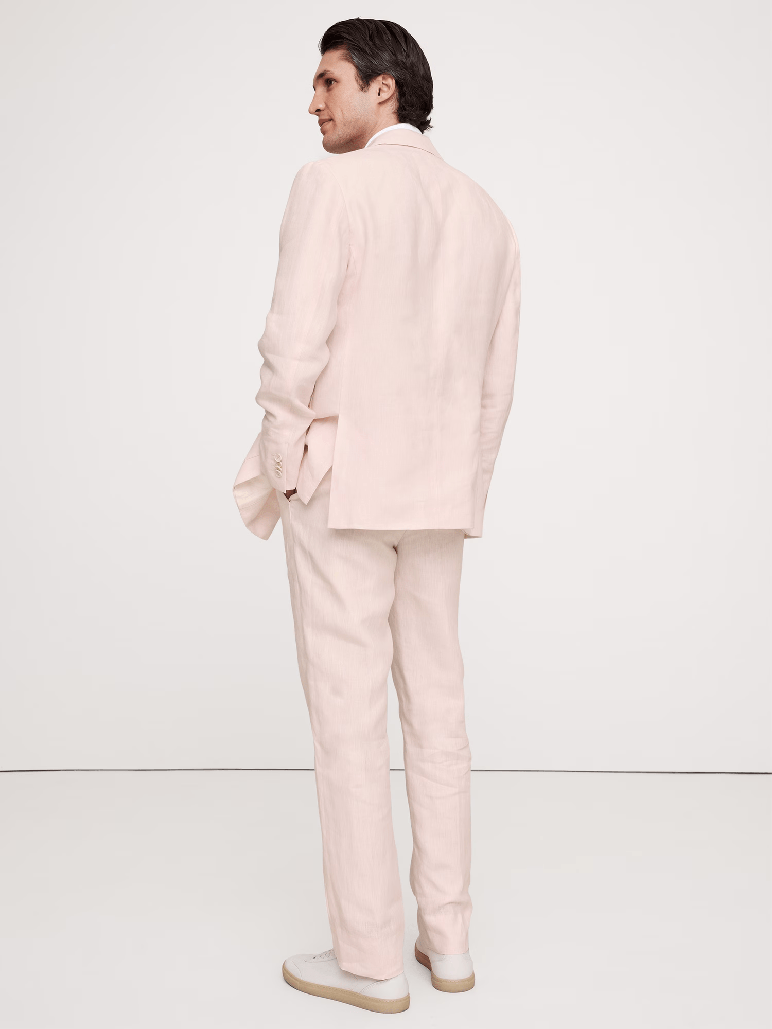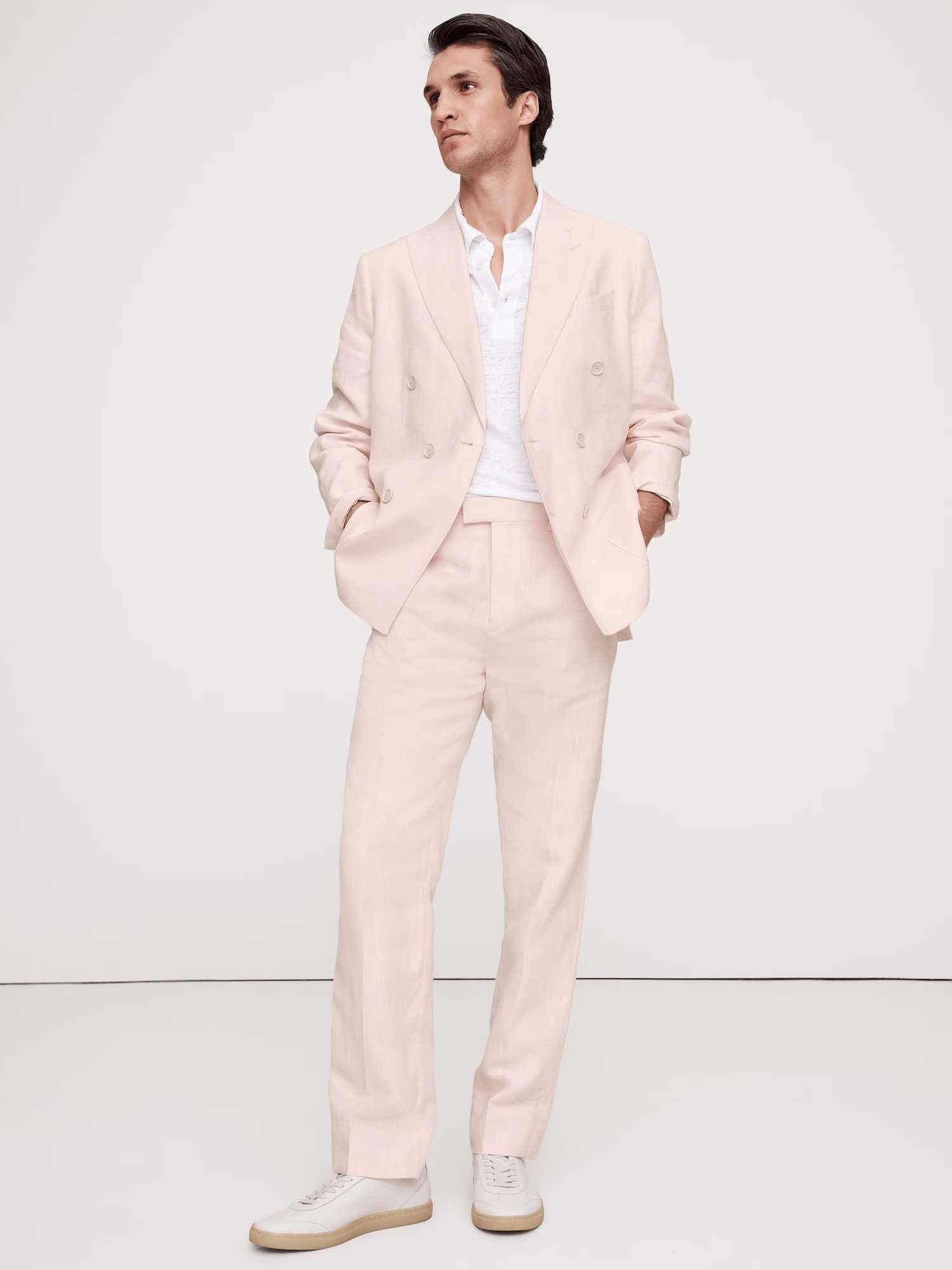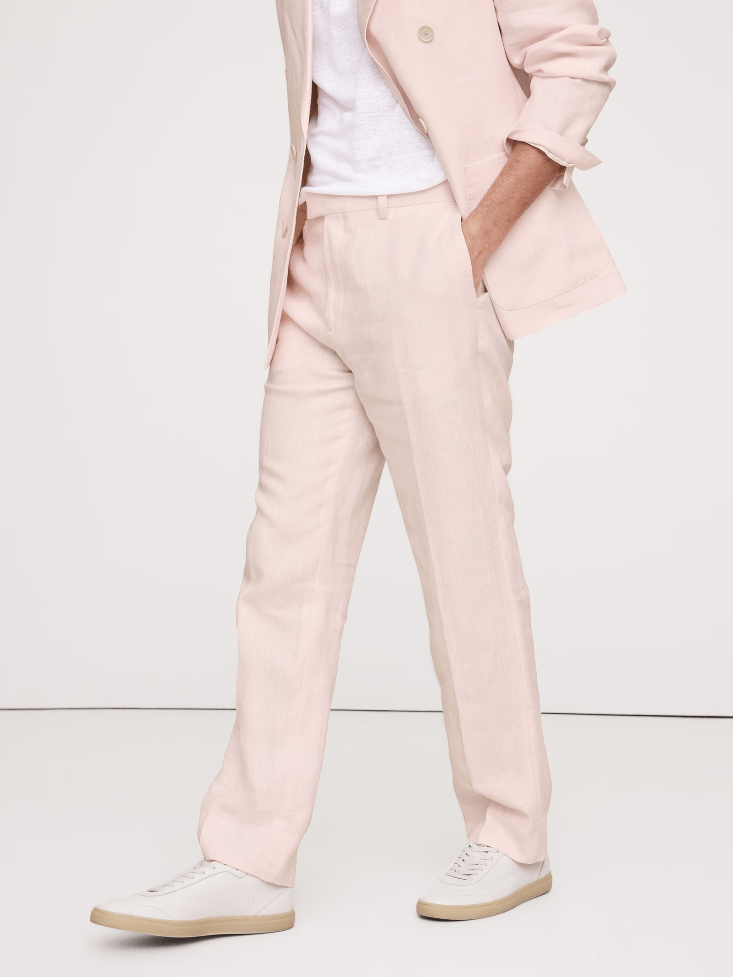 Herrenanzug 2-teilig Baumwoll-Leinen Stilvoll Rosa Spitzes Revers Zweireihiger Sommer Freizeitanzug