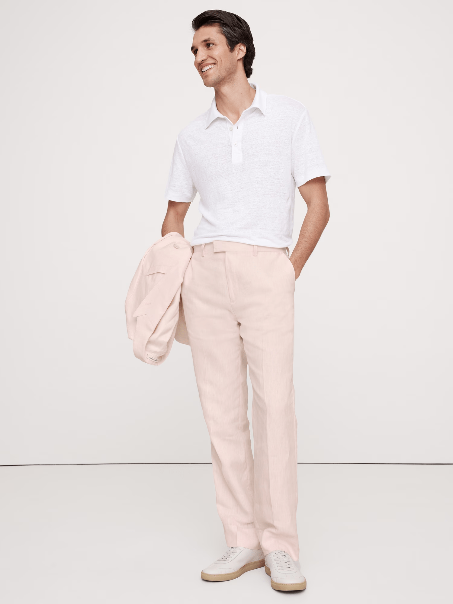 Dieser zweiteilige Sommeranzug aus Baumwolle und Leinen für Herren besticht durch einen stilvollen Rosaton und ein raffiniertes Zweireiher-Design mit spitzem Revers. Er besteht aus einem atmungsaktiven Mischgewebe aus 40 % Baumwolle und 60 % Leinen und umfasst einen vollständig gefütterten Blazer mit funktionalem Patch, Paspel und Innentaschen sowie einen seitlichen Schlitz für mehr Bewegungsfreiheit. Die passende Hose verfügt über einen Reißverschluss und vier echte Taschen und verbindet Komfort mit einer maßgeschneiderten Passform. Ideal für die Freizeit bei warmem Wetter oder für legere Anlässe. Dieser Anzug ist pflegeleicht und sowohl maschinen- als auch handwaschbar.