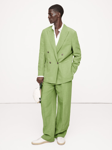 Dieser zweiteilige grüne Sommer-Freizeitanzug für Herren vereint Baumwoll-Leinen-Komfort mit raffinierter Schnittführung. Gefertigt aus einem atmungsaktiven Mischgewebe aus 40 % Baumwolle und 60 % Leinen, verfügt das Set über einen spitzen Revers, einen zweireihigen 4-Knopf-Blazer mit seitlichen Belüftungsschlitzen. Er verfügt über praktische Aufnäher, Leisten- und Innentaschen sowie 4-Knopf-Ärmelschlitze und ist vollständig gefüttert. Die passende Hose hat einen Reißverschluss, echte Hüft- und Nahttaschen und ist pflegeleicht in der Maschine oder Handwäsche. Ideal für stilvolle, entspannte Sommeranlässe.