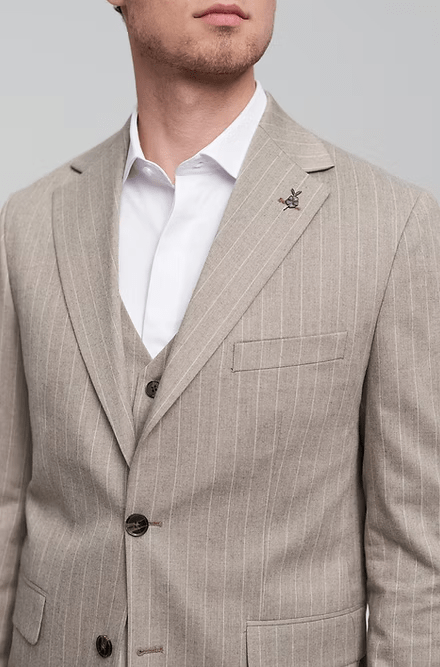 Dieser formelle, zweiteilige, zweireihige Herrenanzug ist eine elegante Wahl für geschäftliche oder formelle Anlässe. Er besteht aus einem glatten Mischgewebe aus 35 % Viskose und 65 % Polyester und verfügt über einen Blazer mit steigendem Revers, einen zweireihigen Vier-Knopf-Frontschnitt, Seitenschlitze, ein durchgehendes Futter und mehrere praktische Taschen für Stil und Funktionalität. Die Ärmel sind mit vier Manschettenknöpfen versehen, die für einen eleganten Touch sorgen. Die passende Hose verfügt über einen Reißverschluss sowie praktische Hüft- und Nahttaschen. Dieser pflegeleichte Anzug lässt sich in der Maschine oder von Hand waschen und bietet zeitlose Eleganz mit modernem Komfort.