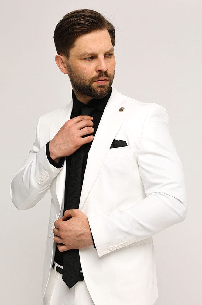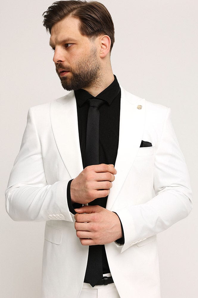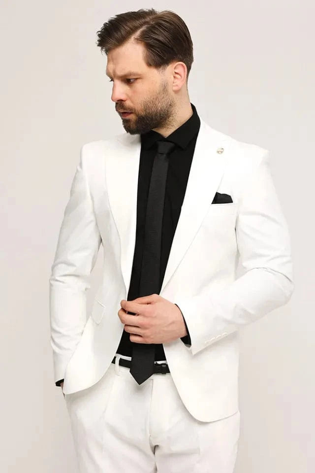 Herrenanzug 2-teilig Weißes Spitzes Revers Modisch Vielseitiger Western Smoking für verschiedene Anlässe