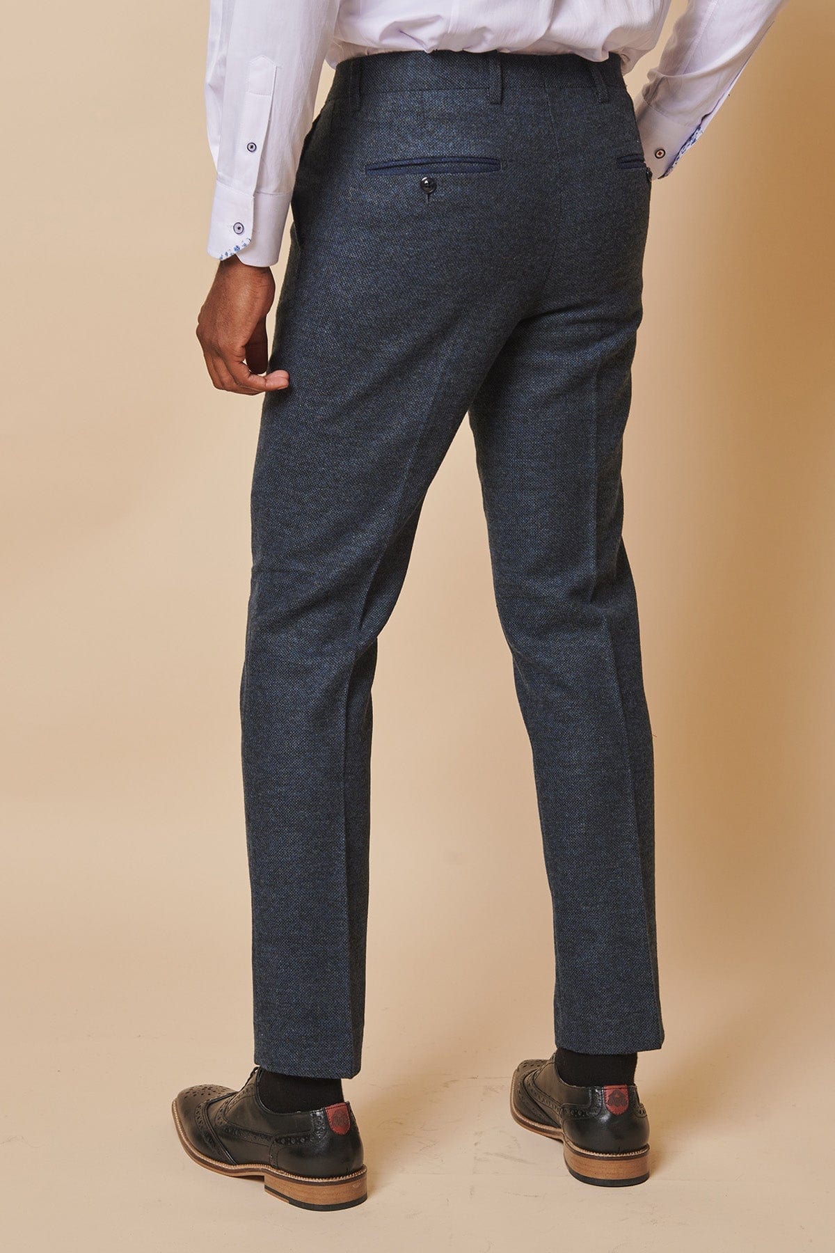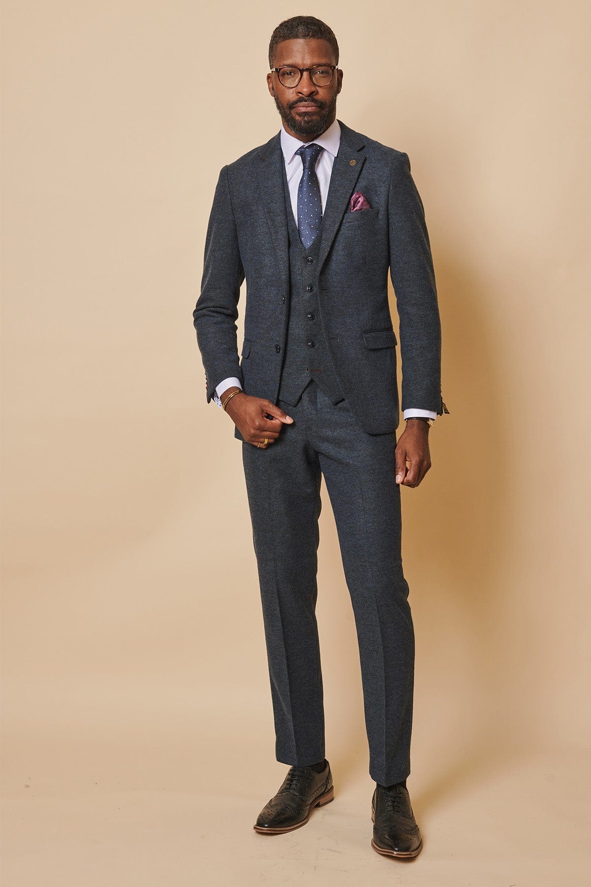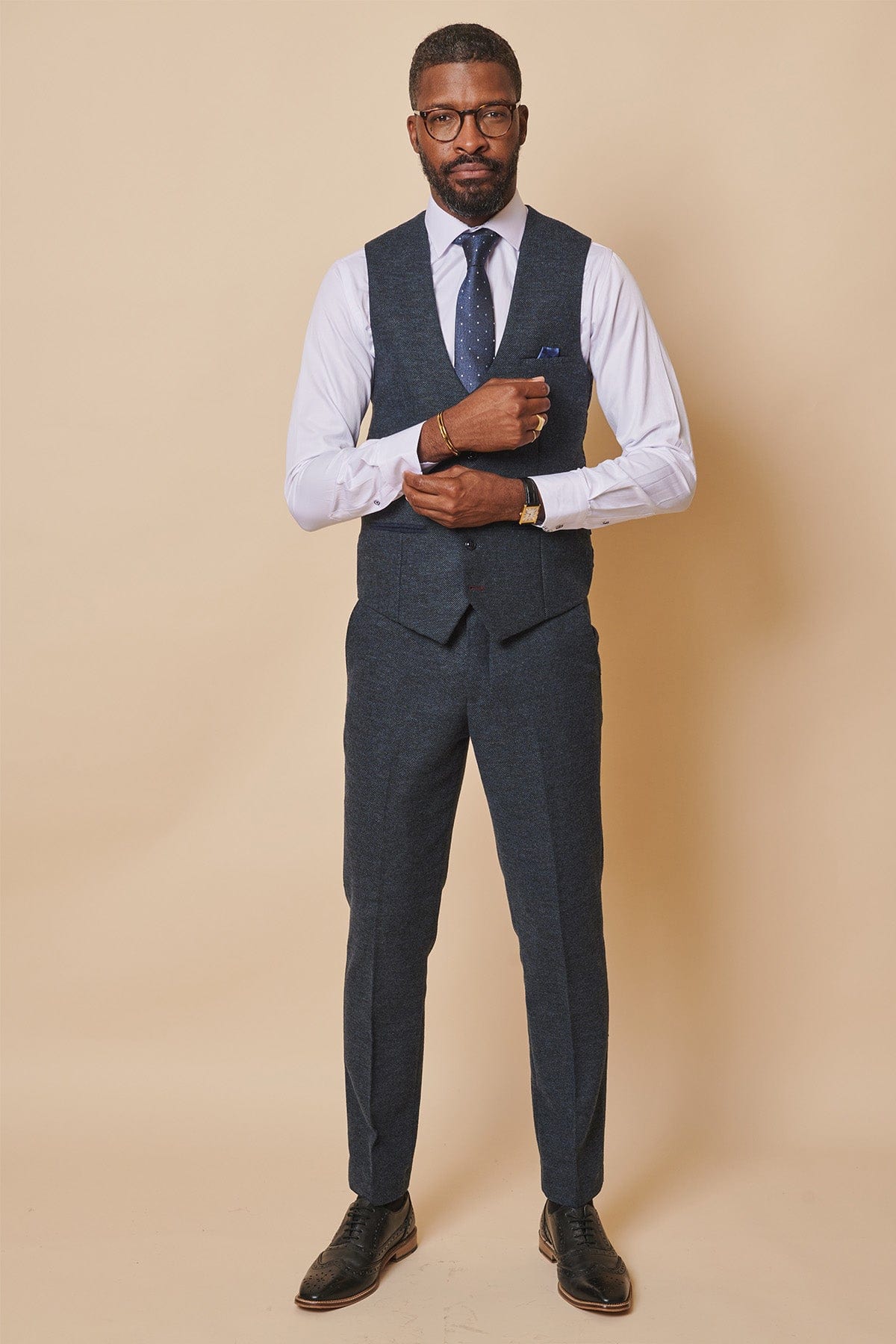 Herren 3 Teil Navy Mode Formal Tweed Wolle Herringbone Notch Lapel Herrenanzug Blazer Weste Hose
