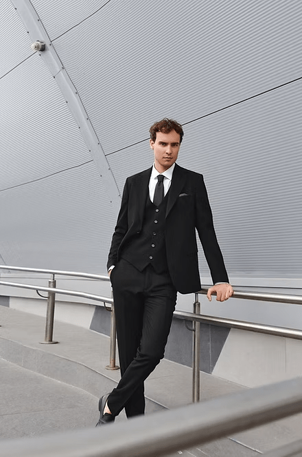 Klassischer Herrenanzug 3-teilig in Schwarz mit markantem modischem Design und Notch Revers – Business Anzug für verschiedene Anlässe